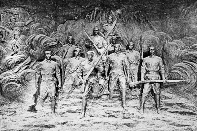24日上午,他們依托幾處天然巖石頑強戰(zhàn)斗,打退了日偽軍多次進攻,幾名戰(zhàn)士犧牲。最后,王殿元和兩名戰(zhàn)士抱在一起拉響了最后一顆手榴彈,與沖上來的敵人同歸于盡。