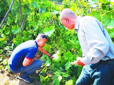 山西省總工會(huì)派駐宋家溝村第一書記楊濤(左)幫助村民引進(jìn)葫蘆種植,以豐富旅游產(chǎn)品。光明日?qǐng)?bào)記者 李建斌攝