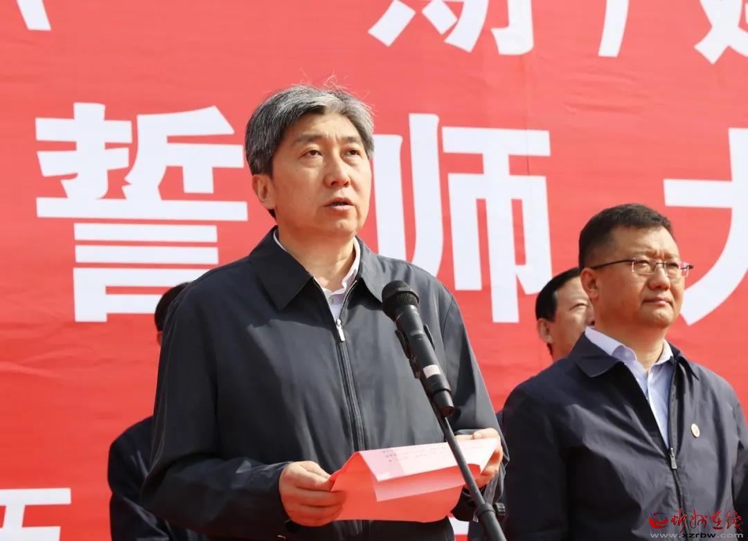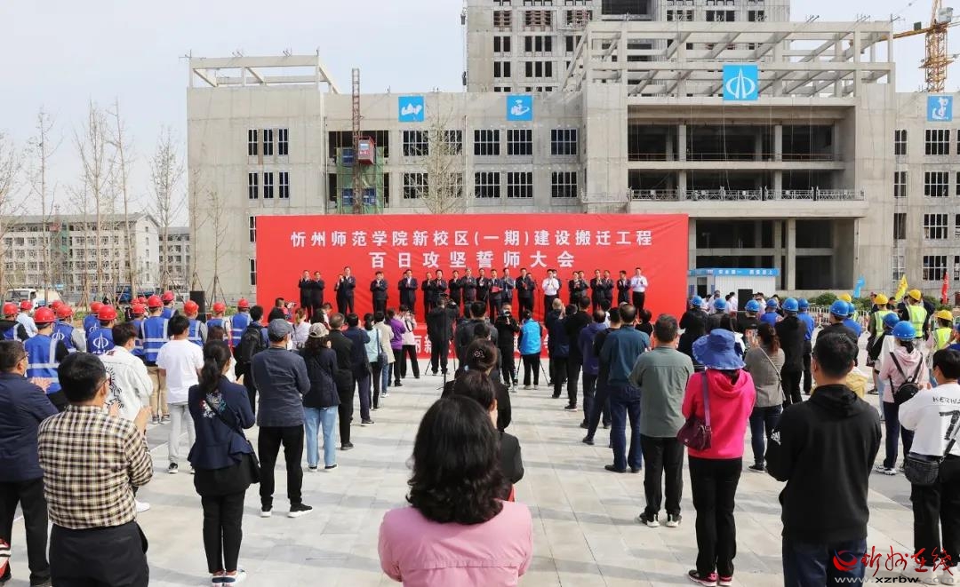 本報(bào)訊 (記者任逢春)5月11日,忻州師范學(xué)院新校區(qū)(一期)建設(shè)搬遷百日攻堅(jiān)誓師大會(huì)舉行,進(jìn)一步激勵(lì)全體參建人員凝心聚力,緊抓施工黃金期,大干100天,確保忻州師院新校區(qū)9月份前如期順利投入使用。市長(zhǎng)朱曉東出席活動(dòng)并提出工作要求。忻州師院黨委書(shū)記王軍致辭。市政府一級(jí)巡視員武憲堂主持誓師大會(huì)。忻州師院院長(zhǎng)張虎芳,市政府副市長(zhǎng)、秘書(shū)長(zhǎng)郭寶厚等出席大會(huì)。市直相關(guān)部門(mén)負(fù)責(zé)人,山西建投、山西建工職工代表,忻州師院師生代表等參加大會(huì)。、