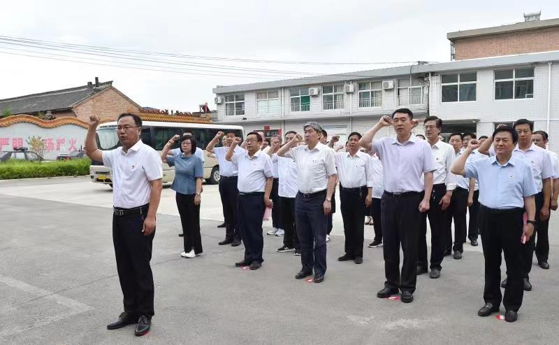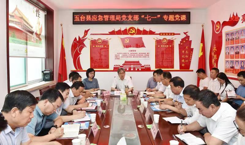 與五臺縣應(yīng)急管理局黨支部同志重溫入黨誓詞。馮曉磊 攝