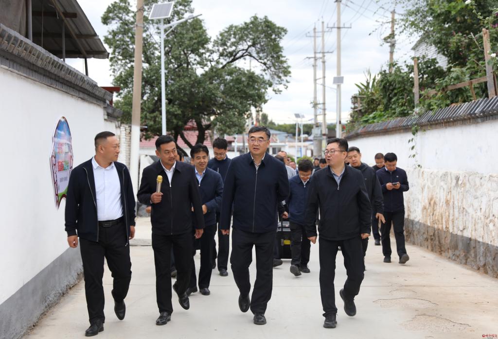 在河曲縣舊縣鎮(zhèn)舊縣村觀摩檢查“千萬工程精品示范村”項(xiàng)目整治情況。范濤 攝