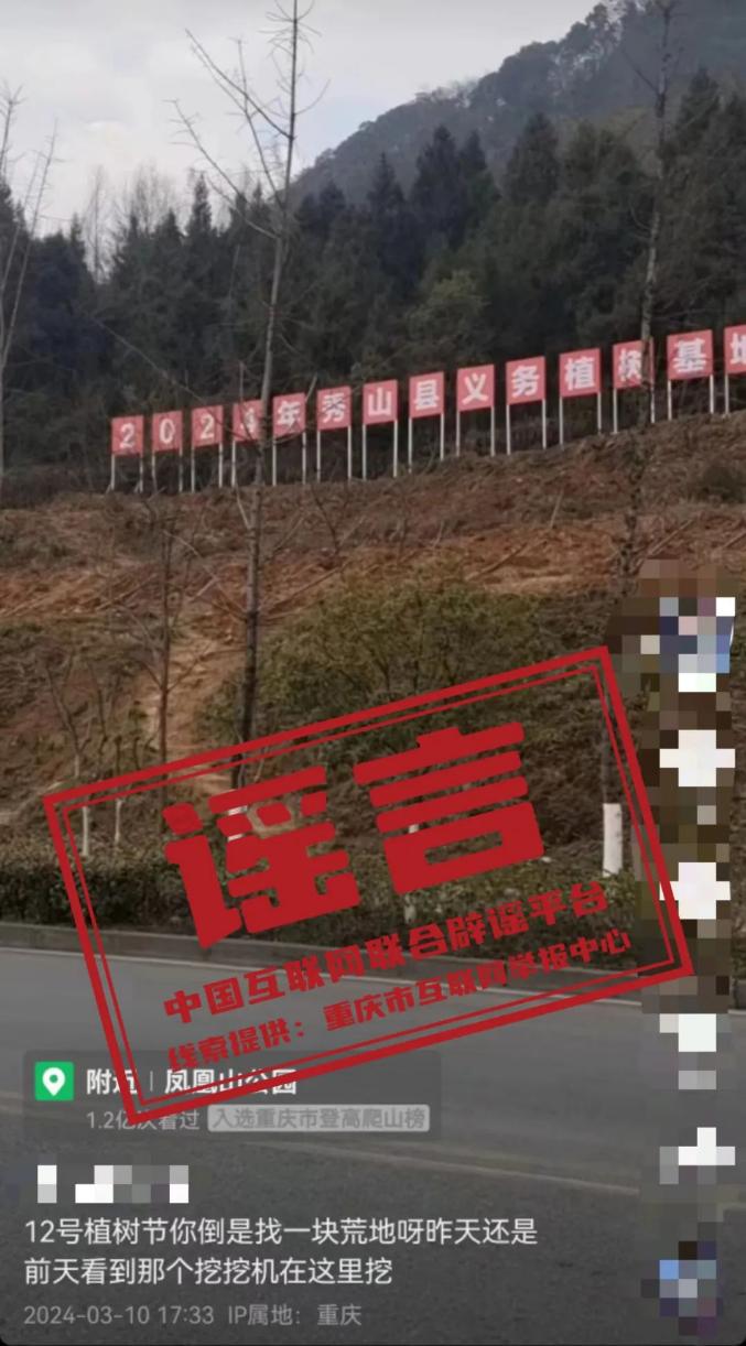 謠言:重慶市秀山縣鳳凰山公園把原有樹(shù)木挖了來(lái)辦植樹(shù)節(jié)?