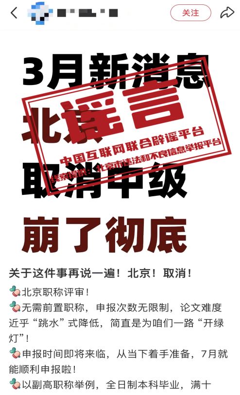 辟謠:“北京取消中級職稱”系謠言