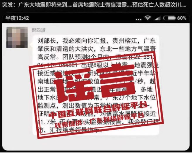辟謠:網傳院士預測廣東將發(fā)生8級以上大地震?謠言!已報警