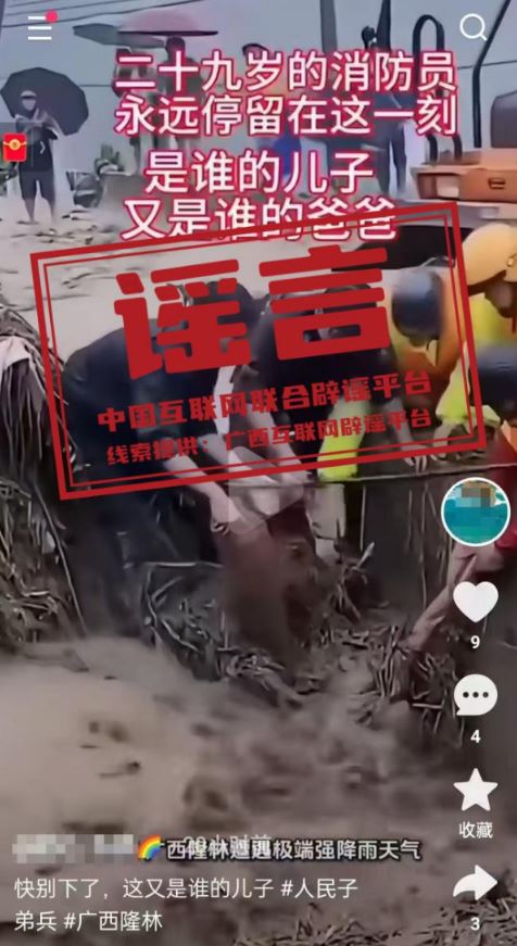辟謠:網傳“一名消防員在廣西隆林抗洪救援任務中犧牲”為不實信息