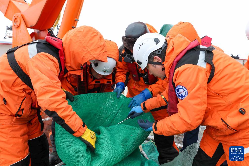 北京時(shí)間2024年1月5日凌晨,在“雪龍2”號(hào)艉甲板,中國第40次南極考察隊(duì)開始了抵達(dá)阿蒙森海后的首次考察作業(yè)。新華社記者 周圓 攝