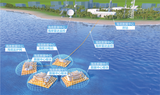 沉入海底的數(shù)據(jù)艙并非就此成為“孤島”,它與岸站、水下分電站和海底光電復(fù)合纜共同組成了海底數(shù)據(jù)中心。海底光電復(fù)合纜聯(lián)通其余3部分,將電力和網(wǎng)絡(luò)分配到每一個(gè)獨(dú)立的海底數(shù)據(jù)艙。