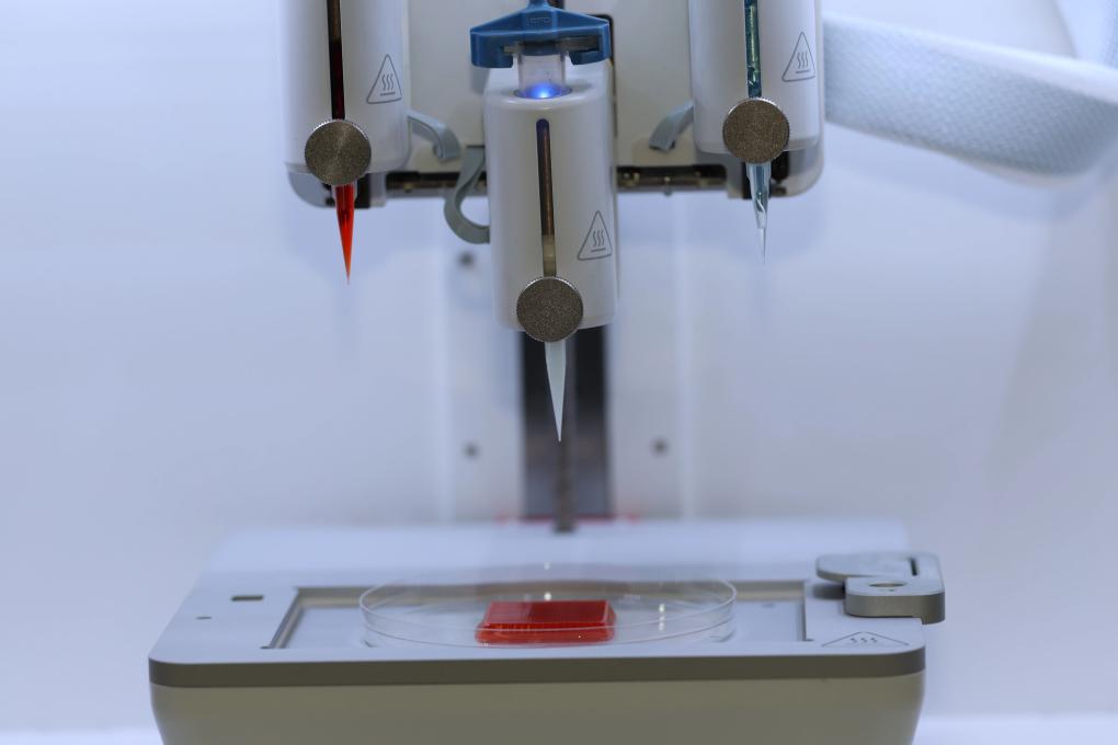 南京農(nóng)業(yè)大學(xué)肉品質(zhì)量控制與新資源創(chuàng)制全國重點(diǎn)實(shí)驗(yàn)室、國家肉品質(zhì)量安全控制工程技術(shù)研究中心,3D生物打印細(xì)胞培養(yǎng)肉技術(shù)展示。新華社記者 趙久龍 攝
