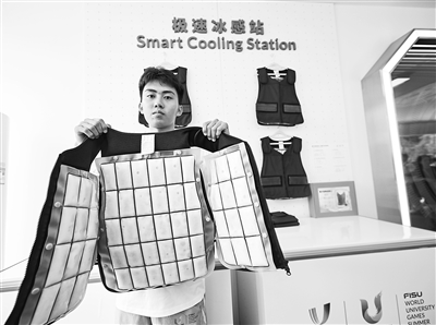 工作人員展示“降溫背心”。新華社記者 王曦攝