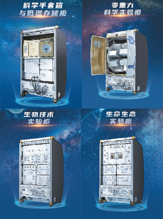 除了無容器材料實(shí)驗(yàn)柜之外,天和核心艙內(nèi)還有高微重力實(shí)驗(yàn)柜,為航天醫(yī)學(xué)分析、基礎(chǔ)物理研究等提供理想的微重力實(shí)驗(yàn)環(huán)境。問天實(shí)驗(yàn)艙部署了生命生態(tài)實(shí)驗(yàn)柜、生物技術(shù)實(shí)驗(yàn)柜、科學(xué)手套箱與低溫存儲(chǔ)柜、變重力科學(xué)實(shí)驗(yàn)柜以及艙外暴露實(shí)驗(yàn)裝置等科學(xué)實(shí)驗(yàn)設(shè)施。夢(mèng)天實(shí)驗(yàn)艙則配置了13個(gè)標(biāo)準(zhǔn)載荷機(jī)柜,目前已裝載了超冷原子物理實(shí)驗(yàn)柜、高精度時(shí)頻實(shí)驗(yàn)柜、高溫材料科學(xué)實(shí)驗(yàn)柜、兩相系統(tǒng)實(shí)驗(yàn)柜、流體物理實(shí)驗(yàn)柜、燃燒科學(xué)實(shí)驗(yàn)柜等實(shí)驗(yàn)“神器”,主要面向微重力科學(xué)研究。