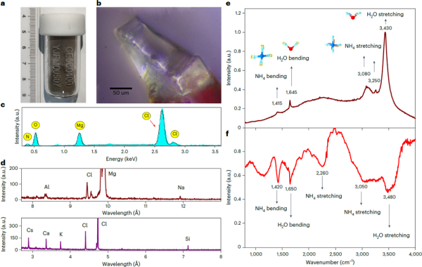 記者7月23日從中國(guó)科學(xué)院物理研究所獲悉,我國(guó)科研團(tuán)隊(duì)在嫦娥五號(hào)月球樣品中,發(fā)現(xiàn)了一種富含水分子和銨的未知礦物晶體——ULM-1。這是科學(xué)家首次在月壤中發(fā)現(xiàn)分子水。相關(guān)成果日前在國(guó)際學(xué)術(shù)期刊《自然·天文學(xué)》在線發(fā)表。