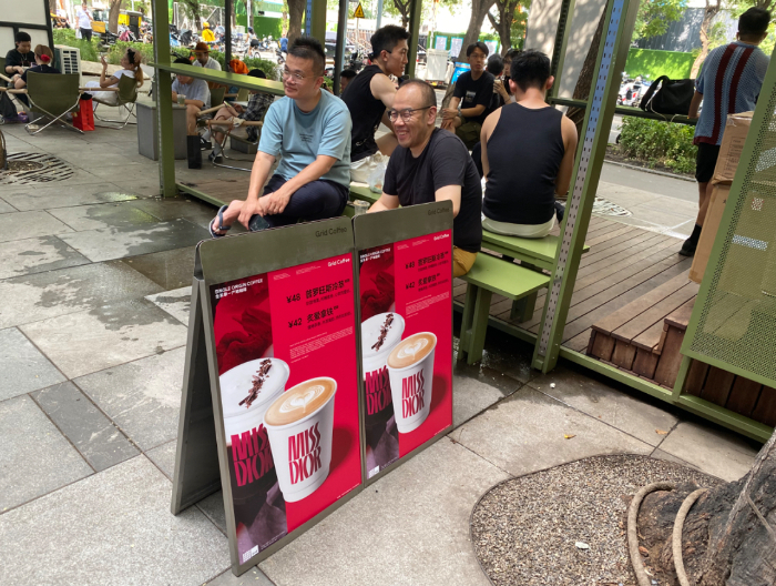 Grid Coffee與迪奧聯(lián)名咖啡吸引消費者排隊購買。