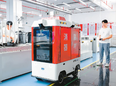 福建省福州市倉山區(qū)大力發(fā)展以智能制造為主導(dǎo)的新一代信息技術(shù)產(chǎn)業(yè),通過人才引進(jìn)、科技創(chuàng)新、強(qiáng)化金融服務(wù)和落實(shí)財(cái)稅等惠企政策,積極打造數(shù)字經(jīng)濟(jì)核心產(chǎn)業(yè)集聚區(qū)。圖為技術(shù)人員在福建漢特云智能科技有限公司生產(chǎn)線上調(diào)試消防智能巡邏機(jī)器人。新華社記者 魏培全攝