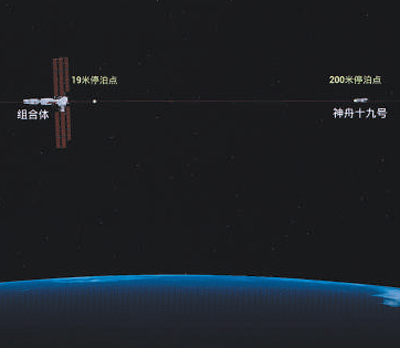 圖⑥:在北京航天飛行控制中心拍攝的神舟十九號載人飛船和空間站對接畫面。