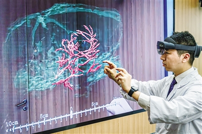 圖為科研人員展示通過混合現(xiàn)實(shí)技術(shù),微米級(jí)呈現(xiàn)腦機(jī)接口裝置與大鼠大腦主要血管和腦組織的空間位置關(guān)系。新華社記者 肖藝九 攝