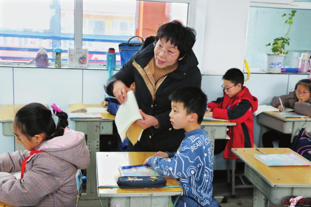 崔淑英在指導(dǎo)學(xué)生學(xué)習(xí)。