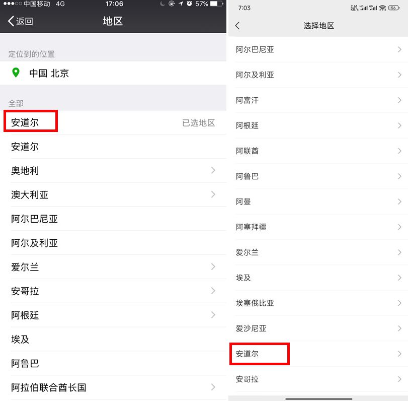 第一個原因就跟微信設(shè)置地區(qū)的順序有關(guān)。早些時候注冊微信,選擇歸屬地的列表是按照中文拼音排序的,安道爾由于其中的“A”和“D”都靠前,所以排在了地區(qū)中的第一位。