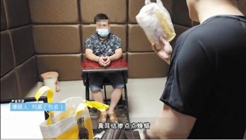 “耳結(jié)是平時收集的耳屎和蜂蠟混合做成的”劉某交代,平時會將免費掏的耳屎收集起來,在家做成“耳結(jié)”,在合適的時候把“耳結(jié)”放入客人耳中。耳朵有問題的老人“求醫(yī)心切”更容易上鉤,價格會按老人的穿著打扮試探性說一個相對高一點的,如果老人嫌貴就降價,等老人同意了再“動手”,這樣幾乎不會失手?!拔覕[攤掏耳結(jié)已經(jīng)兩年了,從來沒有人報警”被審訊時,劉某仍然不相信自己因為這事進(jìn)派出所。