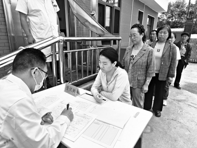“有沒有基礎(chǔ)疾???”“有沒有過敏史?”“早上吃飯了沒?”……8月20日10時(shí),在靜樂縣杜家村鎮(zhèn)中心衛(wèi)生院的門口,等著要體檢的村民們已經(jīng)排起了長隊(duì)。