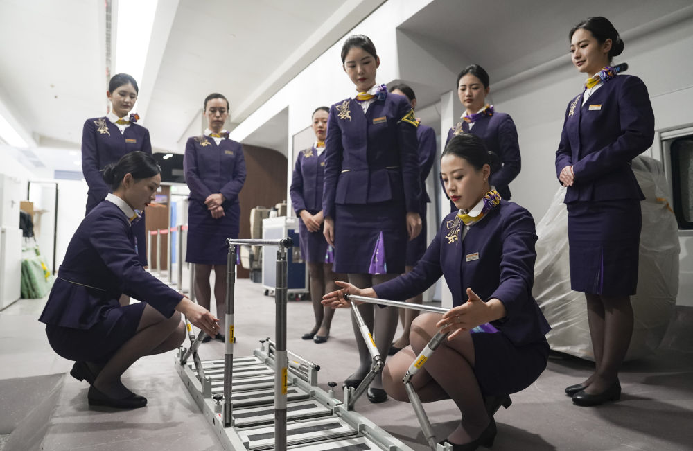 ■鐵路上??瓦\段高鐵一車隊組織乘務人員進行列車服務、形體禮儀、應急演練等方面的培訓,迎接即將到來的春運。