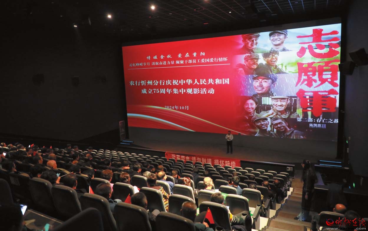 近日,農(nóng)行忻州分行組織機關(guān)員工和離退休職工共同觀看《志愿軍:存亡之戰(zhàn)》紅色電影。此次觀影活動,旨在追憶崢嶸歲月,汲取奮進力量,凝聚愛國愛行情懷,激發(fā)員工奮斗精神,增強戰(zhàn)勝困難的信心和決心,以推動全行高質(zhì)量發(fā)展。 (殷俊攝)