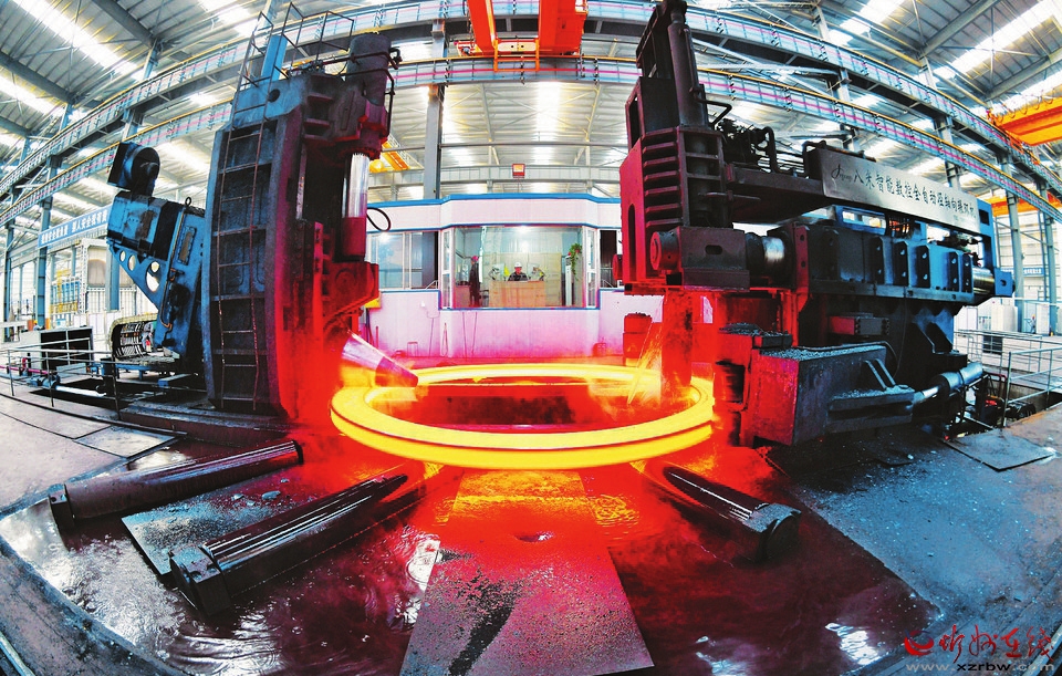智能數(shù)控全自動徑軸向輾環(huán)機正在進行輾環(huán)作業(yè)。 張晉蘭攝