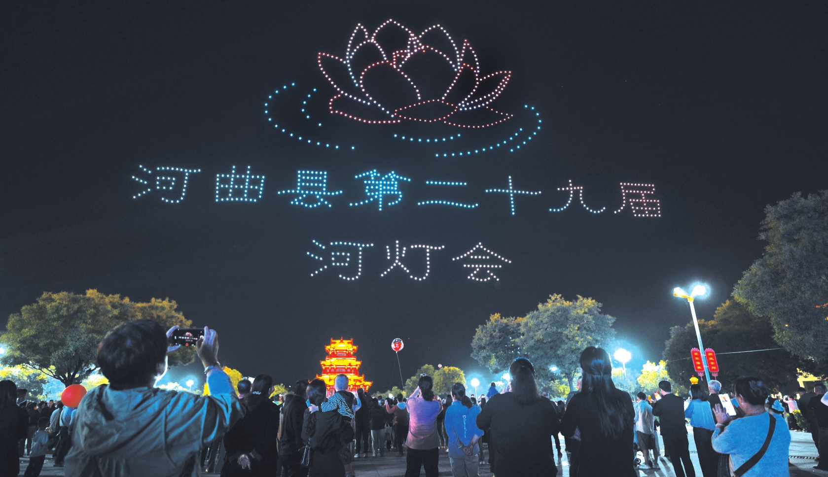 為期三天的無人機(jī)表演,創(chuàng)新采用3D動(dòng)態(tài)編隊(duì)技術(shù),通過40組高精度畫面切換,將河曲的地理標(biāo)志、文化符號與時(shí)代精神深度融合,實(shí)現(xiàn)“一幕一主題、幀幀皆故事”的沉浸式體驗(yàn),以“科技+文旅”讓市民和游客領(lǐng)略大美河曲的獨(dú)特魅力。市民張一婷說:“能在家門口看到這么高水平的無人機(jī)表演,挺自豪的。這種創(chuàng)新的‘文化表達(dá)’方式將我們家鄉(xiāng)的故事用高科技手段‘寫’在了夜空這張畫卷上。這說明家鄉(xiāng)的發(fā)展不只在經(jīng)濟(jì)方面,更是一種文化上的自信與創(chuàng)新。河燈與無人機(jī)燈光天地呼應(yīng),是傳統(tǒng)與現(xiàn)代的完美融合。”