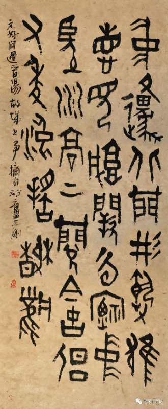 志剛先生因篆悟書,于書入篆,實際上就是兼顧了書寫的本質,找到了體現“漢字”本性的落點。對于一個書法家來講,除了解決書法的共性特征外,必須解決自己的個性特征才能名符其實,否則就很難有較高的成就。因為“篆”的綜合性和獨特表現性,正好可以給書寫者提供一種理解書法特質的通道,那就是如何在更為有限的空間里呈現漢字審美的問題!在篆里,漢字固定的型,卻可以,而且必須根椐不同的語境有所改變才會呈現出藝術魅力。也就是先能“有”,然后再進入“無”,從“有”入“無”就可以得自由,如果能夠解決這一問題,并將之綜合體現在書法創(chuàng)作中自然就會有在非同凡響的面貌。