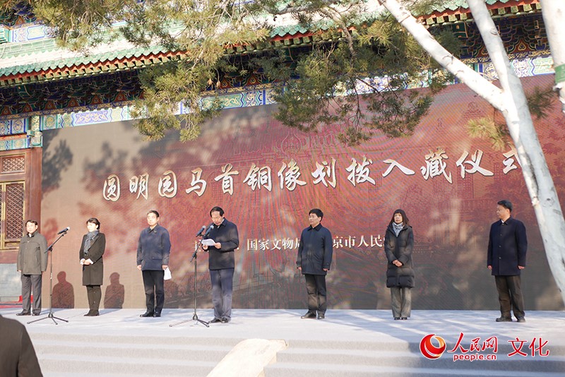 圓明園馬首銅像劃撥入藏儀式現(xiàn)場(chǎng)。人民網(wǎng) 韋衍行攝