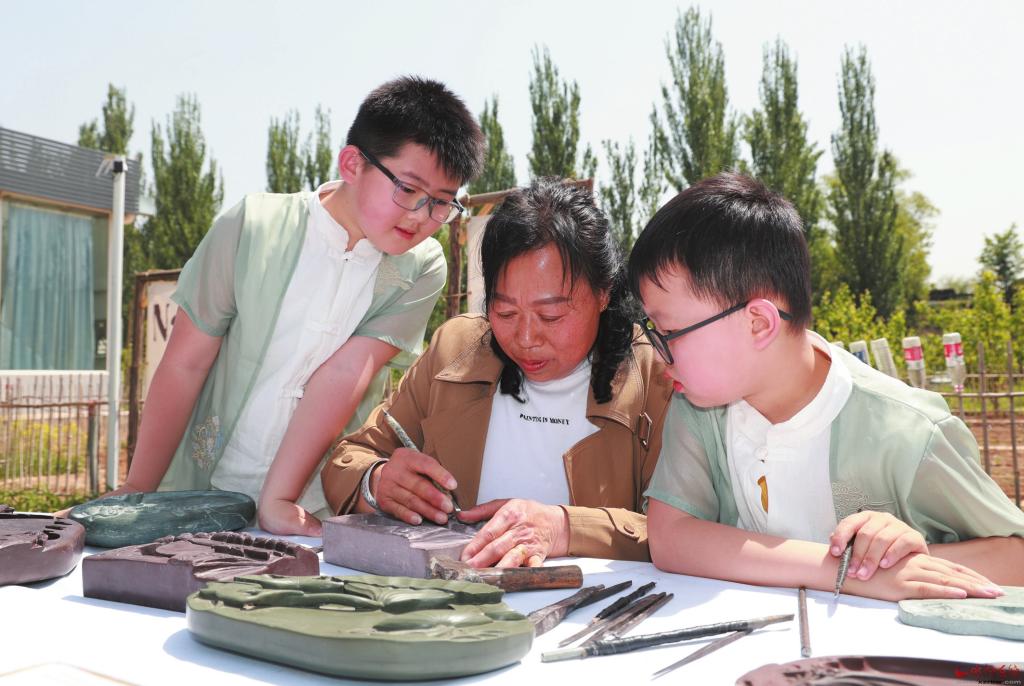 “如果不掌握歷史文化知識,就不會理解硯臺雕刻的價值,這樣的作品是沒有靈魂的?!痹诔幣_雕刻展示臺前,來自定襄的非遺傳承人正在認真講解。身著漢服的學生刀筆生花,認真進行雕刻體驗。“活動讓孩子感受到了手工制作的樂趣,還學到了不少非遺文化知識?!笔忻裢觖愓f。