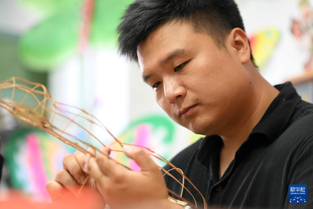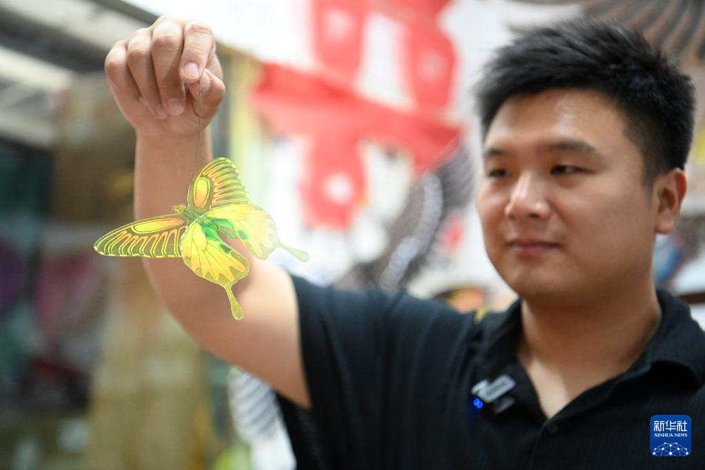 出身風(fēng)箏世家的魏博文大學(xué)畢業(yè)后,回到家鄉(xiāng)跟隨父親魏國秋“入行”做風(fēng)箏。他從自己有所基礎(chǔ)的繪畫著手,發(fā)揮年輕人的創(chuàng)新優(yōu)勢,在風(fēng)箏設(shè)計上屢屢出新,不僅與一些游戲公司合作推出風(fēng)箏聯(lián)名款,還推動風(fēng)箏制作技藝的改進創(chuàng)新,設(shè)計了適合在室內(nèi)放飛的迷你風(fēng)箏。