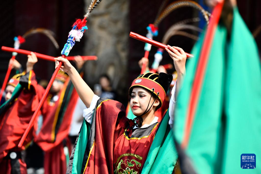 當(dāng)日,世界互聯(lián)網(wǎng)大會(huì)數(shù)字文明尼山對(duì)話期間,曲阜孔廟再現(xiàn)開城、開廟儀式,并舉辦中華優(yōu)秀傳統(tǒng)文化展演,為中外與會(huì)嘉賓和游客呈現(xiàn)了一道文化大餐。新華社記者 郭緒雷 攝