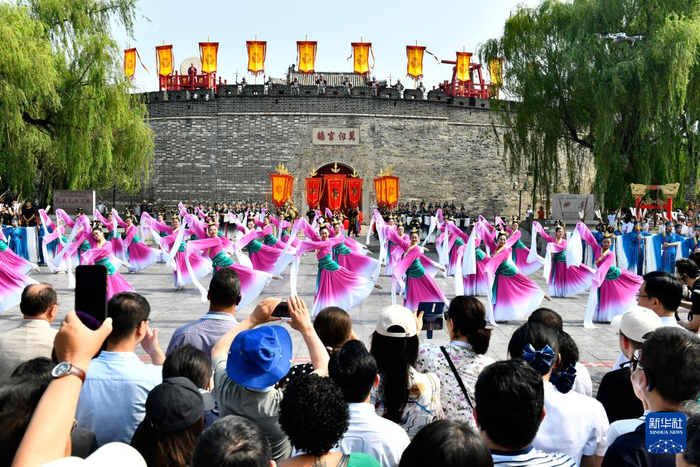 6月27日,在曲阜孔廟,工作人員在開城儀式上表演。?