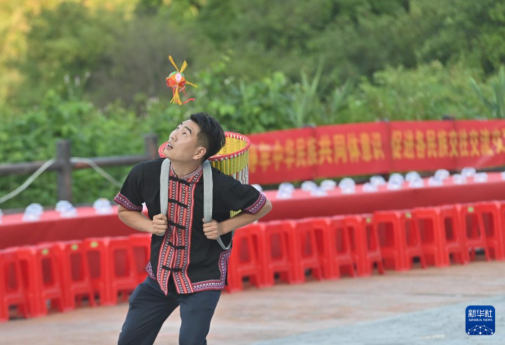 9月5日,廣西梧州市委統(tǒng)戰(zhàn)部、市民宗委、市工商聯(lián)等部門開展民族團結(jié)進步創(chuàng)建主題活動,當?shù)馗髯甯刹咳罕娡ㄟ^拋繡球、板鞋競速、篝火晚會等內(nèi)容豐富、形式新穎的民俗系列文體活動,促進各民族交往交流交融。新華社記者 黃孝邦 攝