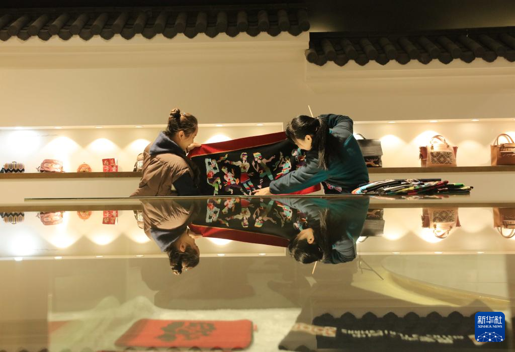 立冬過后,湖南省張家界市武陵源區(qū)非遺土家族織錦生產企業(yè)根據(jù)顧客訂單,制作圍巾、披肩、拖鞋、頭飾等冬季系列織錦產品,拓展線上線下銷售渠道,迎接冬天銷售旺季。新華社發(fā)(吳勇兵攝)