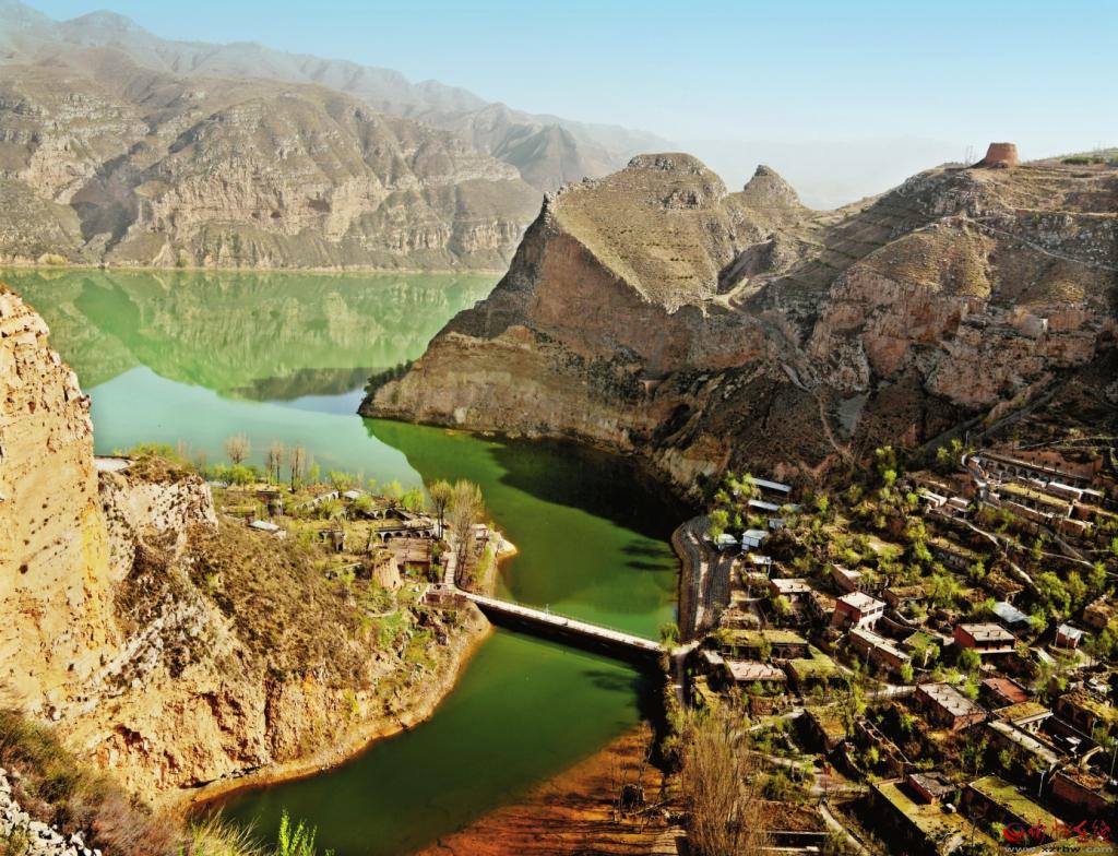 關河口的地理形勢相當險要,是一處絕妙的黃河景觀。關河入黃河處河道幽深狹窄,蜿蜒曲折的崖壁垂直落下,高度約100余米。關河口村對面的崖壁更為險要,俗稱螞蟻崖,意為從崖頂看崖底的人,小如螞蟻,驚險可怖。明萬歷年間的偏關學士盧承業(yè)在《關河魚浪》詩里詠嘆道:“關西形勢若崤函,北塞天橫折向南。巖戍飛樓懸壯劍,河翻浪雪點幽潭?;h蝶影驚魚穴,風送濤聲破烏庵。相接云峰傳八陣,籌邊人至把兵談?!痹娭忻枋鑫麝P河口地勢險要,形若西秦函谷關,就連懸崖峭壁上的巖石和望河樓也像懸在半空中戍邊的利劍,令來犯者望而卻步。但這些都無法掩飾關河口恬適幽靜的景致,河浪如雪,濤聲如雷,潭似點墨,花開花落,彩蝶翩翩,魚影躍躍……此情此景誰能將它與烽火連天的邊關聯(lián)系在一起呢?
