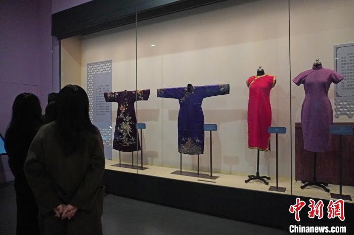 “清代服飾的樣式都比較寬大,服飾中‘禮’的意義大于‘人’的存在,女性身體掩藏在寬肥的衣裙之下。近代的旗袍則凸顯了女性身材。”江西省博物館開(kāi)放教育部講解員李東表示,近代服飾逐步追求實(shí)用與美觀的統(tǒng)一,通過(guò)服裝表達(dá)自我逐漸成為這一時(shí)期女性服飾的新主題。
