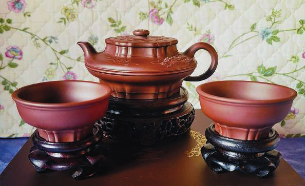 宋代詩人梅堯臣有詩云:“小石冷泉留早味,紫泥新品泛春華。”此壺正是用四海窯多年收藏的紫砂老泥為原料。值得一提的是,紫泥富含礦物質和獨特的透氣性,讓茶水更加清醇可口。甲辰文龍壺還配了兩只龍杯,上寬下斂,簡約靈動,圈足也以筋紋裝飾,使“寸柄之壺”與“盈握之杯”和諧完美而珠聯璧合。(王琪森)
