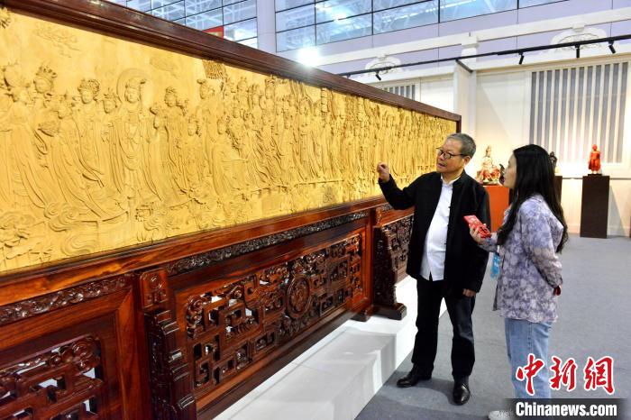 中新網(wǎng)福州5月10日電 (葉秋云)9日至12日,第四屆中國工藝美術博覽會于福建福州舉辦,由中國工藝美術學會造像藝術專委會主任、中國工藝美術大師袁師永與徒弟共同創(chuàng)作的雕漆作品《凈土文化對瓶》首次面向觀眾展出,吸引眾多觀展者的目光。