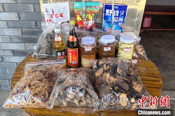 55歲的袁明發(fā)因患病喪失了勞動力,村里人氣越來越旺,他在村干部建議下開起了小商店。商店門口的桌子上琳瑯滿目,擺著蜂蜜、干菇、筍干、茶油等土特產(chǎn)品?!吧獠诲e,自己家的不夠賣,還要向村里其他人收購?!彼哪樕下冻鲂腋Pθ?。