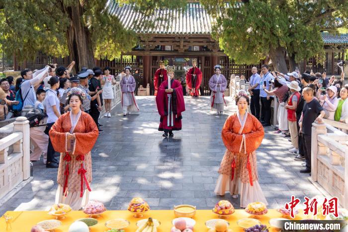中新網(wǎng)太原8月5日電(高雨晴 胡健)古老而盛大的“圣母大祭”傳統(tǒng)禮儀表演依循傳統(tǒng),莊嚴肅穆,仿佛在訴說著千年歷史;水鏡臺上“民樂纏綿”,精致華麗的東方樂器,靈動變換的悠揚曲調(diào),在千年古建園林間回響;原創(chuàng)話劇《唐風(fēng)晉韻話晉祠》,讓民眾沉浸式體驗千年晉祠歷史……