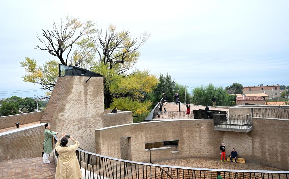 9月16日,市民在內(nèi)蒙古自治區(qū)呼和浩特市回民區(qū)攸攸板鎮(zhèn)西烏素圖村“回”空間藝術(shù)中心參觀游玩。新華社記者貝赫 攝