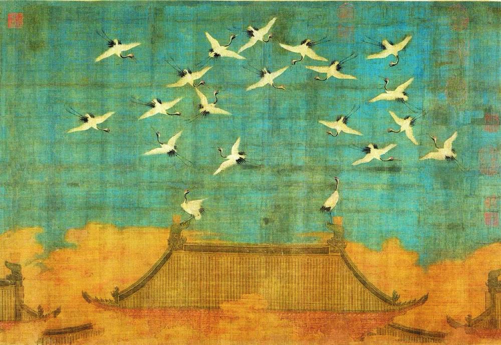 北宋政和二年(1112年)上元節(jié)次夕,天清氣朗,群鶴飛鳴,盤旋于宮殿上空,久久不肯離去。這讓宋徽宗趙佶產(chǎn)生了“仙鶴告瑞”的聯(lián)想,故欣然命筆,將目睹的這一幕繪于絹素之上,一幅千古名作《瑞鶴圖》就此誕生。在題畫詩中,趙佶以瘦金體記述了事件原委。他在詩中將群鶴與古籍中提及的祥鸞、赤雁相提并論,還特意強(qiáng)調(diào)了鶴與長生不老的關(guān)聯(lián),將它們與蓬萊仙山聯(lián)系在一起,指出其壽命能夠長達(dá)千年。雖然趙佶的祥瑞之愿難免落空,但鶴確實(shí)是一種長壽的動(dòng)物。人工飼養(yǎng)的丹頂鶴能活到七十多歲,這相對于古人的平均壽命,實(shí)在是很可觀了。