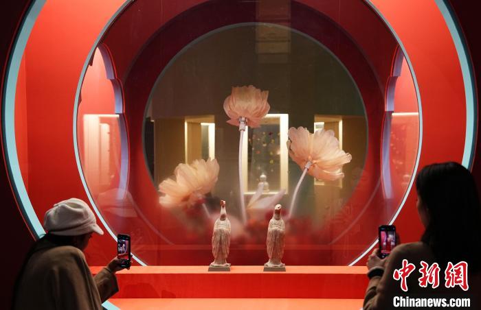 1月22日,“四海一堂春——乙巳蛇年新春文化展”在中國國家博物館開幕,圖為展出的唐代彩繪生肖龍?zhí)召?、蛇陶俑?中新社記者 趙文宇 攝 因應蛇年,此次展覽專門將位于“古代中國”展廳的明星文物婦好鸮尊調入:細看鸮尊雙翅部位,各裝飾有一條盤曲狀的蛇,蛇首如同桃心形狀,蛇身裝飾有連續(xù)的棱形雷紋。 據介紹,這是蛇類紋飾作為裝飾題材出現(xiàn)在商周青銅禮器之上的一種典型代表。半人半蛇的唐代“伏羲女媧像立幅”帛畫,印證著伏羲女媧這一久遠的文化信仰,通過絹帛畫形式在當時的吐魯番地區(qū)傳播,并吸引其他民族的崇奉。此外,展廳中充滿新春氛圍感的桃花洞釉燈籠瓶、白玉“天官賜?!迸濉ⅰ昂镁啤卑子员P等近200余件(套)館藏文物精品,書寫著對即將到來的蛇年新春的期待和祝福。 在農歷北方小年當天開幕的,還有恭王府博物館從館藏年畫中甄選百余幅精品獻上的傳統(tǒng)木版年畫展。展覽分“祈福迎祥”“畫中有戲”“才子佳人”“節(jié)令風物”“燕京歲時”五大板塊,展示天津楊柳青、河北武強、山東楊家埠、陜西鳳翔、河南開封、蘇州桃花塢等重要年畫產地木版年畫,讓觀眾在恭王府古建院落間,感受傳統(tǒng)木版年畫的獨特韻味。