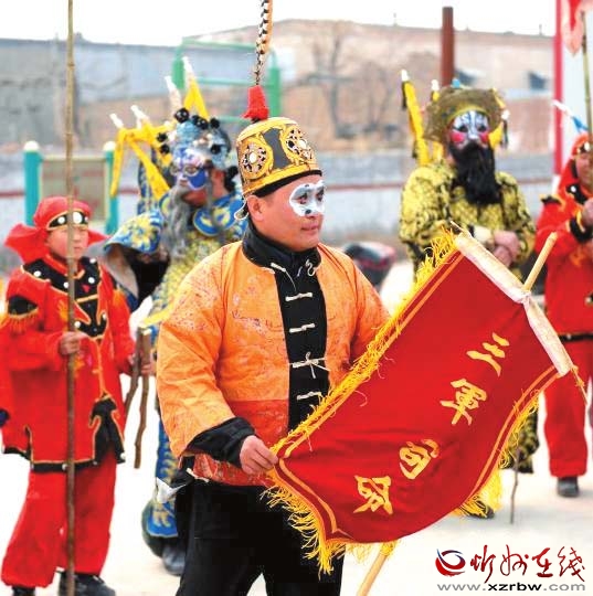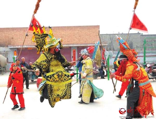 把古代戰(zhàn)爭場面演練成劇,表現(xiàn)多為騎兵對戰(zhàn),故稱為大馬社火。今年春節(jié)期間,定襄北社西村大馬社火被錄制成視頻上傳后,成為最受歡迎的鬧紅火視頻之一,人們紛紛轉(zhuǎn)載,贊不絕口。剛剛過去的元宵節(jié),大馬社火也是定襄鬧元宵不可或缺的重頭戲,北社西村眾多村民自發(fā)組織起來耍社火,表達(dá)祈福驅(qū)邪,對風(fēng)調(diào)雨順、豐產(chǎn)增收的祈愿,形成了一道獨(dú)特的傳統(tǒng)民間文藝風(fēng)景,還吸引了山西省民間文藝家協(xié)會專家現(xiàn)場指導(dǎo),舉行了民間民俗文化調(diào)研座談會。