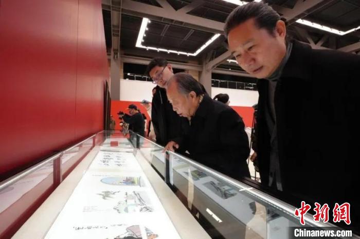 來賓在現(xiàn)場欣賞捐贈作品。 中國國家畫院供圖