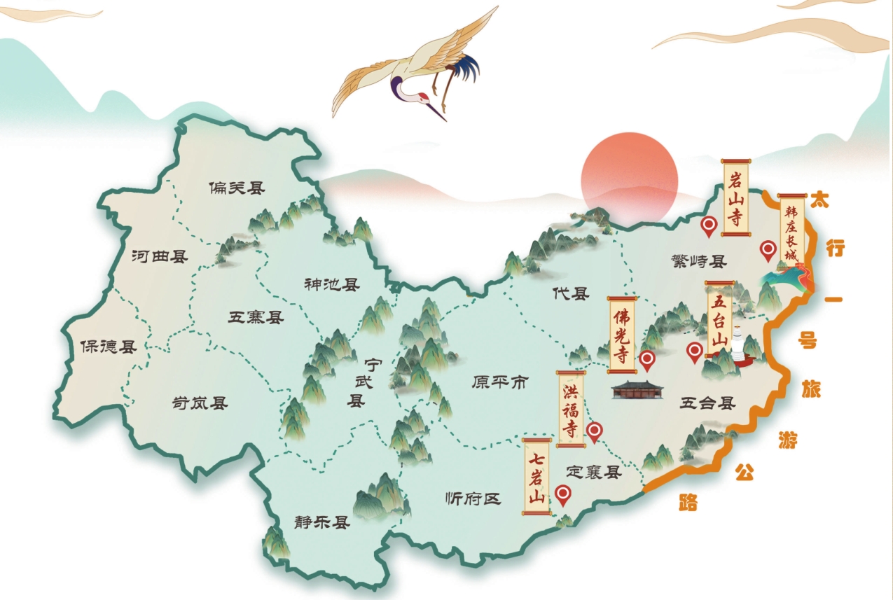 太行一號旅游公路是山西省農(nóng)村道路的重要組成部分,同時也是打造黃河、長城、太行三大旅游板塊,推進(jìn)鄉(xiāng)村振興的戰(zhàn)略性基礎(chǔ)性工程。沿途貫穿忻州、太原、陽泉、晉中、長治、晉城6市45個縣(市、區(qū)),聯(lián)通全省122個A級以上景區(qū)、239個非A級旅游資源(點),主線已成功入選全國20條“行在鄉(xiāng)村,游在路上”的最美自駕精品路線。旅游公路忻州段起點位于五臺縣韓家樓村,途經(jīng)五臺山風(fēng)景區(qū),終點與繁峙縣平型關(guān)長城一號旅游公路主線相接,全長185公里。