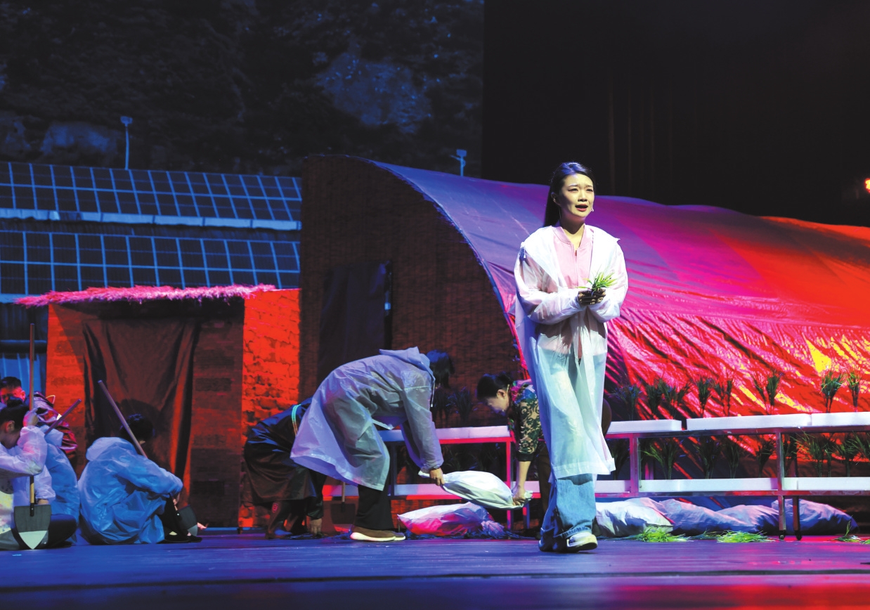 整體來說,話劇《三棵樹下》讓人感受到了編劇、導(dǎo)演以及演出全體的努力。無論是李小雨,還是曹民財,以及村民們,都被時代的洪流裹挾著,個體命運的軌跡不可避免地在歷史的變革洪流中發(fā)生改變。劇目結(jié)尾,以“鄉(xiāng)村文化旅游季”為契機,宋家溝村民們在李小雨、第一書記王家寶以及村委一干人帶領(lǐng)下,大力發(fā)展大棚經(jīng)濟,農(nóng)文旅齊發(fā)展,走上了增收致富的康莊大道,村民們由“要我干”到“我要干”,觀念一旦轉(zhuǎn)變,一切就大變模樣。你只要擺正位置,發(fā)揮自己的優(yōu)勢,就能在鄉(xiāng)村變革中展現(xiàn)嶄新的作為。這便是《三棵樹下》提供給我們的重要啟示。站在這個角度上說,話劇《三棵樹下》的成功也就是順理成章的事情了。其兼具思想深度、藝術(shù)張力和情感溫度,給予觀眾十分好的藝術(shù)享受。(趙志峰)