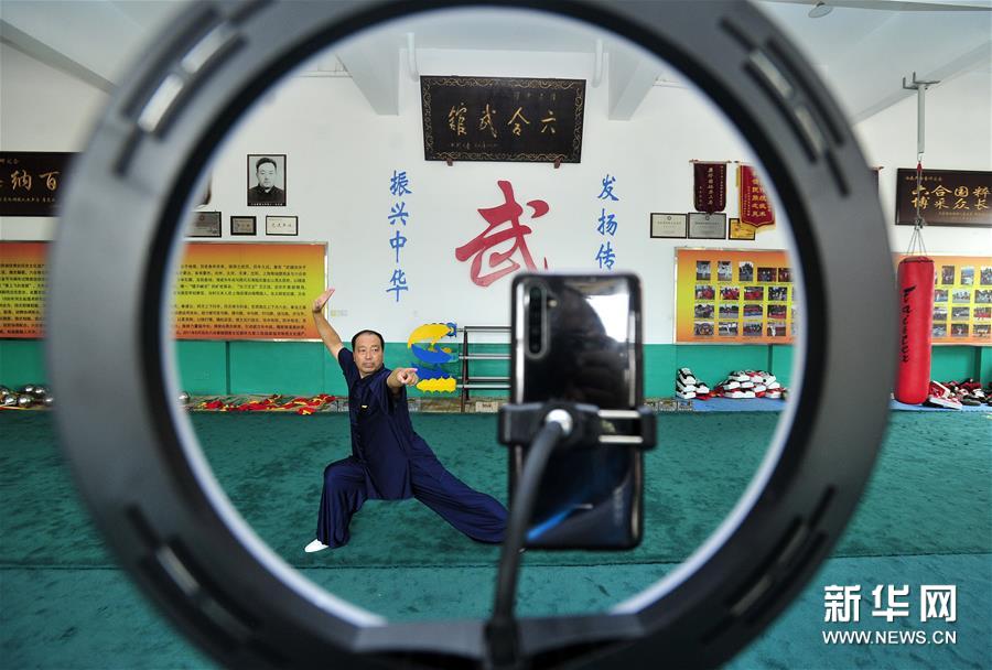 8月5日,石同鼎直播六合拳拳法。時值暑假,為減少聚集習武帶來的疫情風險,同時豐富孩子們的暑期生活,六合拳第八代傳承人石同鼎在直播平臺開通了賬號,每天帶領(lǐng)學生進行網(wǎng)絡(luò)直播教學演示,通過“云端”傳承非遺文化。 今年59歲的石同鼎是泊頭六合拳第八代傳人,他自幼跟隨父親習武。2001年父親離世后,石同鼎便承擔起傳承六合拳的重任。2002年石同鼎建起六合武館,開始教徒弟習武練拳。 作為傳統(tǒng)武術(shù)中長拳的一種,河北的泊頭六合拳有400余年歷史,被列入國家級非物質(zhì)文化遺產(chǎn)名錄。 “通過網(wǎng)上直播,更多的人可以了解六合拳、練習六合拳。”石同鼎說,他希望能把六合拳推向世界,傳得更遠。新華社記者 牟宇 攝
