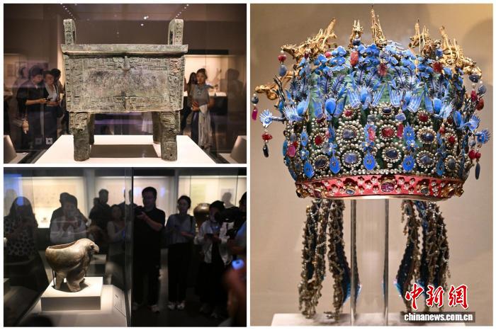 中新網(wǎng)北京7月21日電 (記者 應(yīng)妮)從鷹形陶鼎、紅山文化玉龍、四羊青銅方尊、錯(cuò)金銀云紋青銅犀尊,到擊鼓說唱俑、秘色葵口瓷盤、孝端皇后鳳冠、霽青釉金彩海晏河清尊……“美之道”文化項(xiàng)目于21日在中國(guó)國(guó)家博物館舉行首發(fā)式。